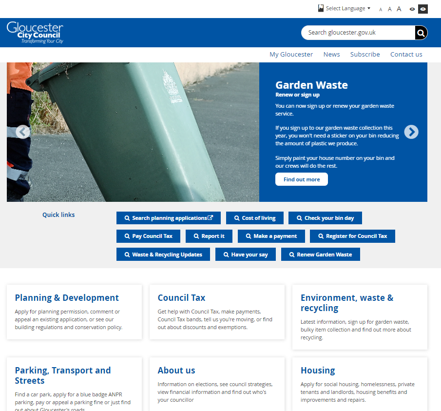Gloucester City Council’s website is built on PPL’s providing the council with access to PPL’s pre-designed and accessibility tested suite of page templates, a custom header and footer, advanced site search, event booking and many more features.